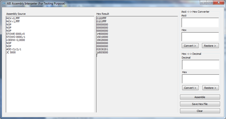 My Processor don’t support floating point numbers until now, and i stopped working on it this period cause i’m working on other projects, but if you want the source of the assembler, i can give it to u, it’s not big deal it took from me 1 day only to implement, and if you want the .circ of the CPU i can give it to you to develop on it, take ideas from it or fix problems in it :), contact me on my e-mail from http://www.about.me/roofman to avoid spam issues ^^