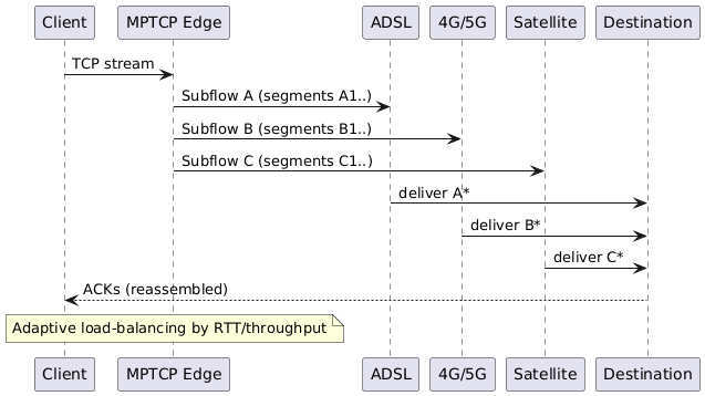 - Aggregation: MPTCP splits your data into packets and sends them across multiple paths simultaneously, optimizing speed and reliability.